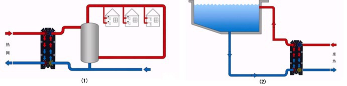 ??⑤地源、水源熱泵: 換熱器作為熱泵主機(jī)和開放式冷熱源的分離裝置,克服水質(zhì)對主機(jī)等敏感設(shè)備的腐蝕。(圖5)