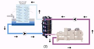??換熱器的使用將開式冷卻循環(huán)系統(tǒng)和機(jī)組的閉式循環(huán)系統(tǒng)分隔開,有效的保護(hù)了機(jī)組閉式循環(huán)系統(tǒng)的潔凈,延長了機(jī)組的使用壽命。(圖7)